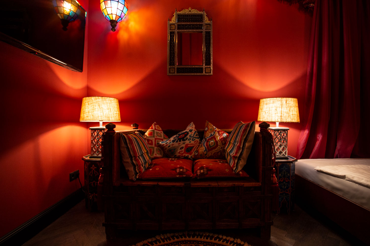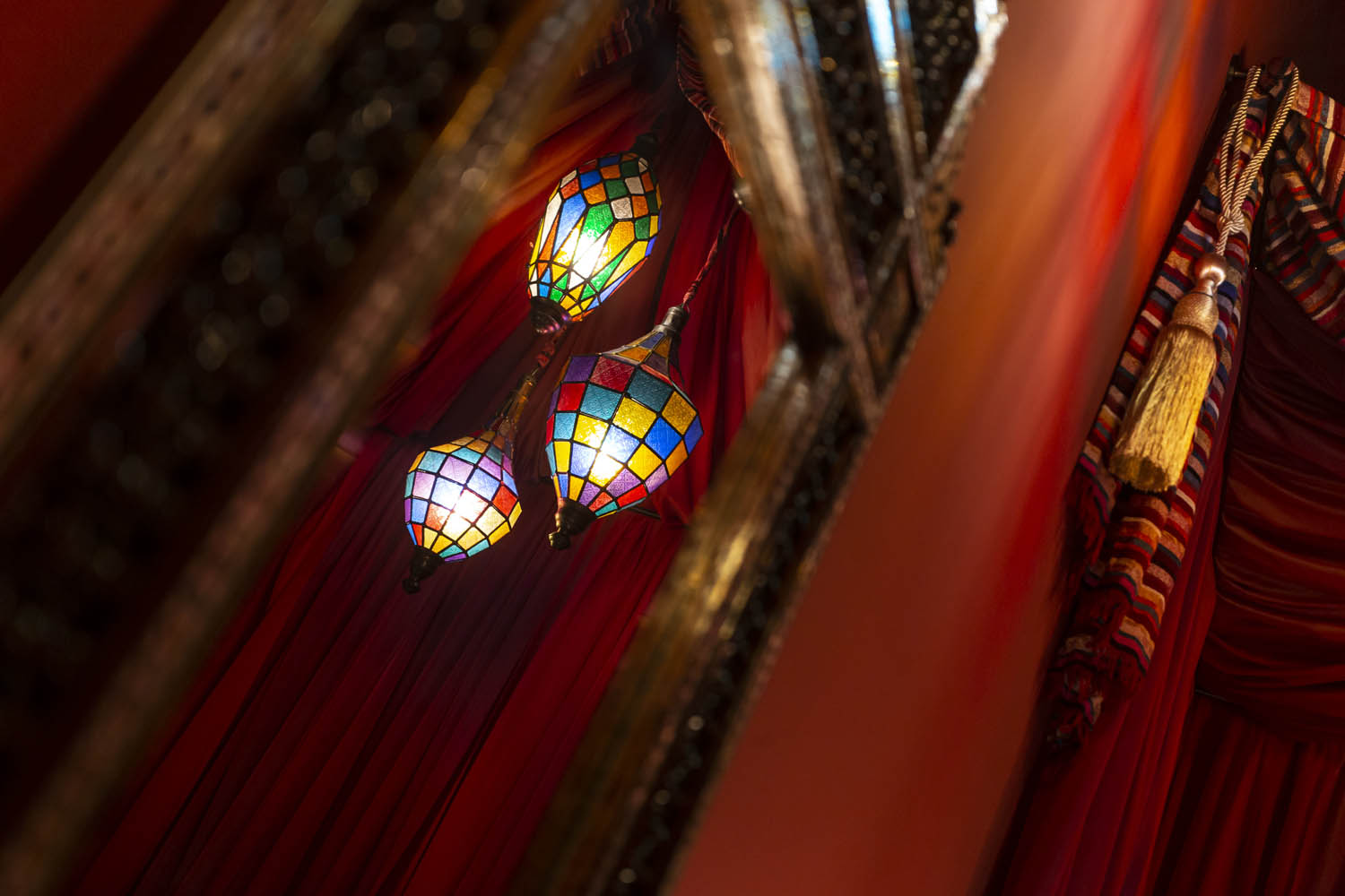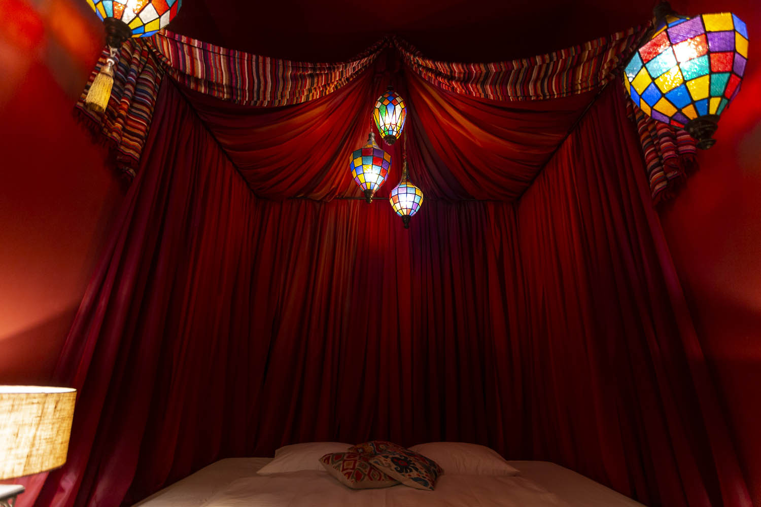 Das Märchen von tausend und einer Nacht wird wahr – gedimmtes Licht scheint durch bunte Glaslaternen, die Insel im Raum wirkt wie eine orientalische Oase und lädt auf eine Reise in die fernöstliche Welt ein. Eine mystische Begegnung im Beduinenzelt; hier werden alle erotischen Künste offenbart und man gibt sich ganz dem Zauber des Orients hin.